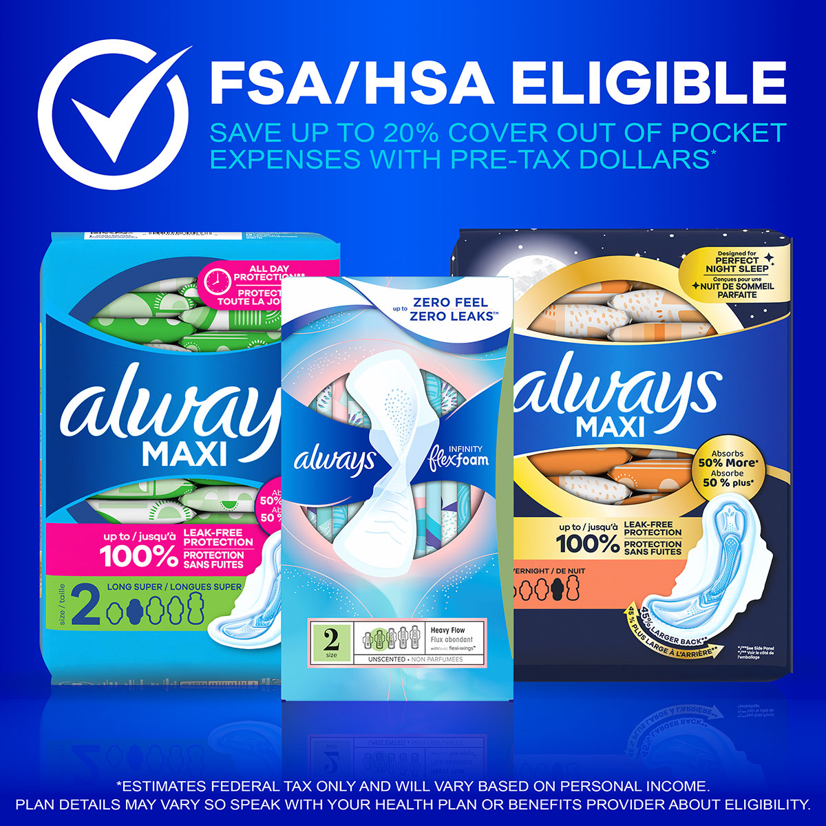 Always Maxi Size 2 Long Super Pads With Wings, Unscented